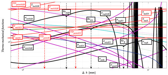 Selected analytical procedures to achieve the target outputs of the presented solution are described above. In short, these are analytical methods for identifying the distribution functions of entropy dS, neutral planes h0, including the method of detailed identification of upper and lower yield strength Re, material layering, and thermodynamic points TDpoints of superimposed layers of thermal spraying, adhesion potentials Adh, the thickness of molten coating layers hmelt, and finally, their final strength parameters, which are essential for application in technical practice. The set of these newly analysed parameters of interest is specified in Table 5. At the same time, connections between the identified thermodynamic and mechanical functions were sought. Based on exact data and graphs, mostly according to the authors’ newly derived equations, a number of new findings were obtained, which can be briefly formulated into the following points: