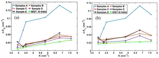 - Balzar, D.; Ledbetter, H. Voigt-Function modelling in Fourier analysis of size and strain – broadened X-ray diffraction peaks. J. App. Cryst. 1993, 26, 97–103. [Google Scholar] [CrossRef]