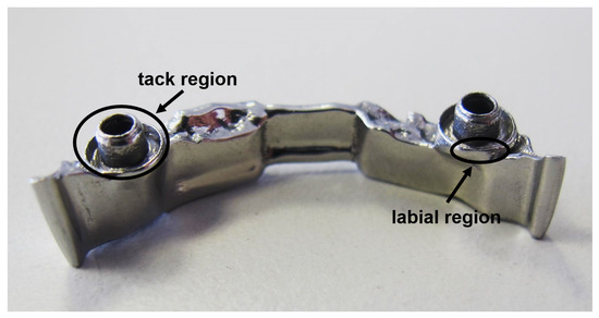 Proper angulation and positioning of dental implants and the superstructure are essential to achieve acceptable prosthetic outcomes and long term success of implants and implant-supported prostheses, in turn striving superior demands on the fitting accuracy of bars with respect to shape divergence and surface roughness, e.g., in the labial region of the bar as indicated in Figure 1. In addition, surface properties should promote the integration of soft tissue while minimizing plaque and bacterial retention [23].