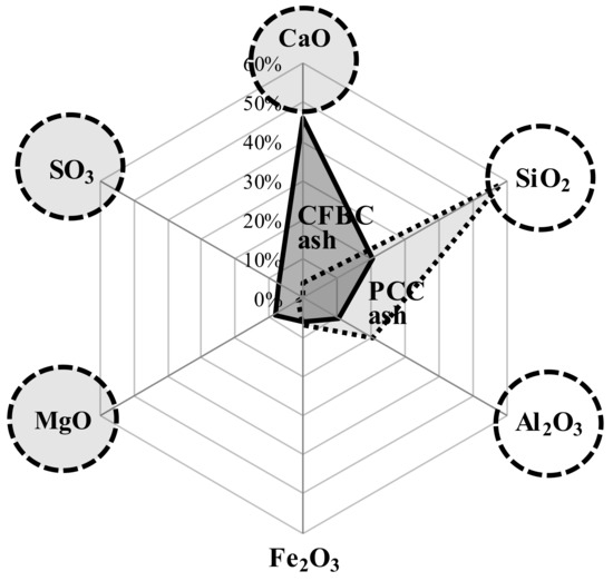 Chemical compositions of circulating fluidized bed combustion (CFBC) ash and pulverized coal combustion (PCC) ash.
