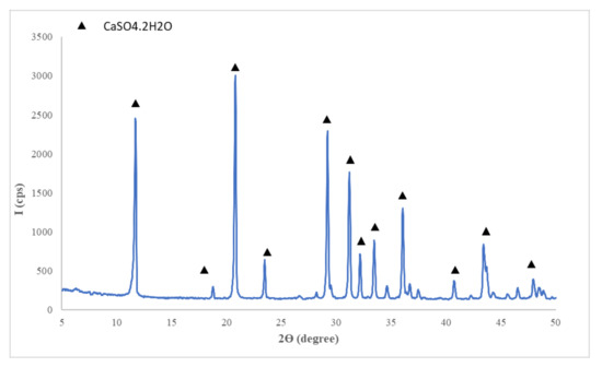 Figure 1. XRD patterns of flue gas desulfurization (FGD) gypsum. - Sodium bicarbonate (NaHCO3) (Sigma-Aldrich, Darmstadt, Germany) chemical reagent;