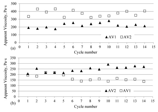 It was also found that the lowest apparent viscosity value AV1 was obtained for sample B (Table 5). The changes observed in the apparent viscosity AV2 indicate a similar tendency, but the differences in the viscosity values between the solid (A) and foamed (B and C) samples are much more noticeable. The measurement carried out in the measuring part of the specimen (L2) showed that the flow resistance for sample A is over 30% greater than for other melts with dissolved gas (samples B and C, Table 5).