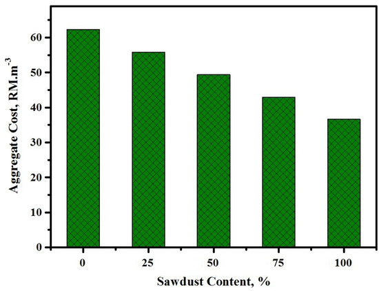 Effect of the sawdust content on the prepared concrete aggregate cost.