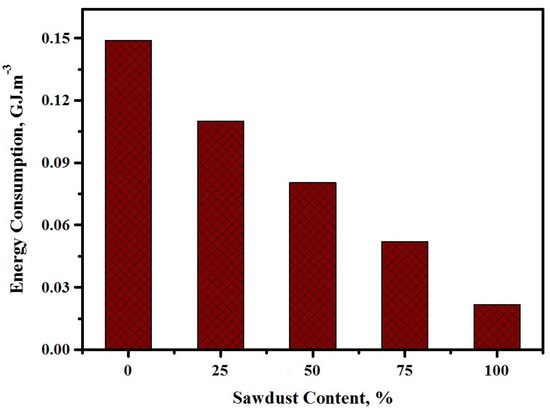 Energy consumption of the concretes prepared at various sawdust contents.