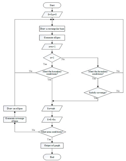 - Area condition: The sum of the area of the ellipse satisfying the coverage condition and the area condition is 30% of the area of the rectangle, and the equation of the area of the ellipse is shown in Equation (23).