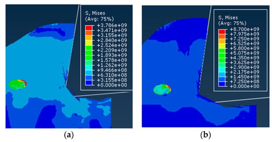 In the equation is the maximum effective displacement in the loading process; the initial effective displacement of the damage; the interface completely invalid effective displacement. The cohesive force model was compiled using the ABAQUS custom material subroutine VUMAT. The input of the custom material subroutine VUMAT mainly includes the material parameter matrix and the state variable storage matrix. The specific parameter settings of the material parameter matrix are shown in Table 5. Where, , is the maximum normal and tangential stress, δn, δs and is the cracking displacement corresponding to the maximum normal stress and the maximum tangential stress; T0 is the initial thickness of the element; E is the elastic modulus, which characterizes the stiffness of the interface layer.