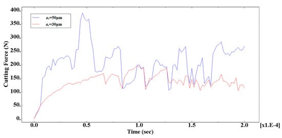 6.2. Comparison between Simulated Cutting Force and Experimental Cutting Force