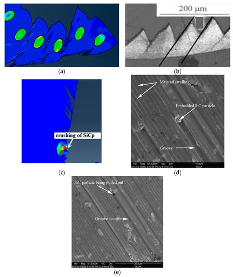- Ghandehariun, A.; Kishawy, H.A.; Umer, U.; Hussein, H.M. Analysis of tool-particle interactions during cutting process of metal matrix composites. Int. J. Adv. Manuf. Technol. 2016, 82, 143–152. [Google Scholar] [CrossRef]