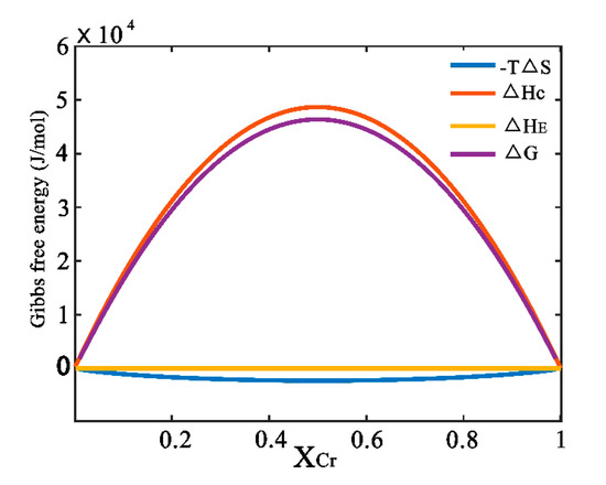 On the other hand, the Gibbs free energy in the Cu-Cr system also increases with the refinement of crystallite size, which determined by Equation (13):