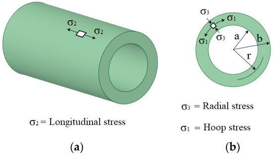 Sketch of stress field nomenclature (a) Longitudinal; (b) Radial and hoop.