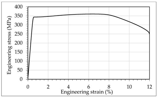 The selected materials for each part and their mechanical properties are shown in Table 1. A tensile test specimen was machined from the same raw material of the drilled cylindrical specimen and was tested according to ISO 6892-1. Figure 4 shows the registered engineering stress-strain curve.