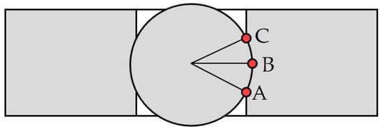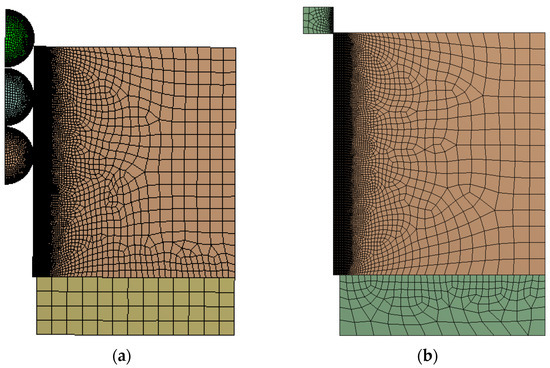 - Three balls with 4.980, 4.990 and 5.000 mm diameters (see Figure 8a). In this simulation, each ball was moved beside the next with three different enforced displacements. Thus, no contact was established between balls.