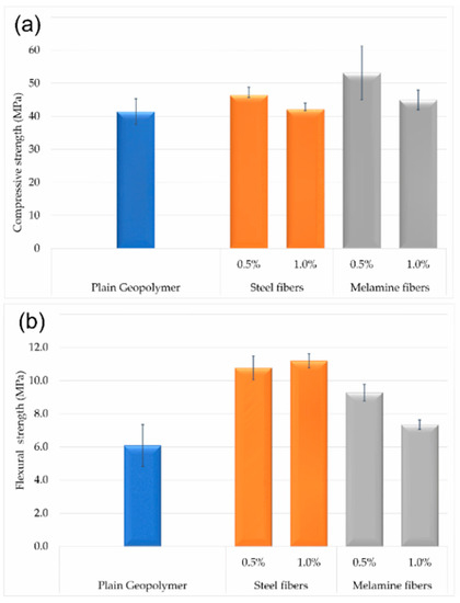 - As the content of steel fibers increases from 0.5 to 1.0% by weight, the bending strength increases, but the same increase of melamine fibers causes decreases in flexural resistance. However, the value of the flexural strength is still higher than that for unmodified geopolymer;