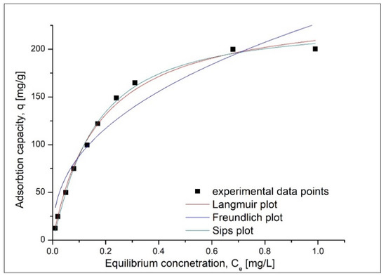 In order to better describe the Cd(II) adsorption process, experimental data were modeled using three different adsorption isotherms: Langmuir, Freundlich and Sips.