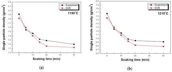Prediction of the single particle density according to the SVR method: (a) 1190 °C, (b) 1210 °C.
