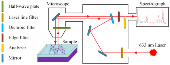 Regarding the crystalline orientation of 2D materials, there are several methods, such as microscopic observation using a scanning probe microscope (SPM) [23] or transmission electron microscope (TEM) [24,25], infrared or micro-Raman spectroscopy, and angle-resolved conductivity. In comparison, the contact method of angle-resolved conductivity has a lower spatial resolution and worse sensitive angle resolution [21]. It is difficult to use TEM or SPM to realize an online and nondestructive measurement. In addition, most infrared spectrographs are difficult to meet the requirement of crystalline measurement at micro-scale due to spectral and spatial resolution [8,21].