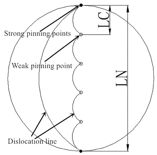 Figure 5 shows the G-L model. It can be seen that the heat treatment had a great impact on the number of and spacing between the strong and weak pinning points. When the stress was high enough, the dislocation line broke away from the weak pinning points and enhanced the damping performance [].