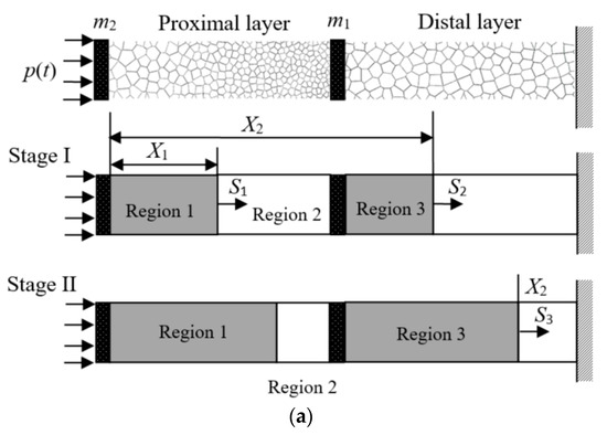 Assuming the cover plate is a rigid body and the origin of the X coordinate is at the proximal end, as shown in Figure 3a. X1 and X2 are used to denote the Lagrangian coordinates of Shock 1 and Shock 2. Thus, the velocities of the two shock fronts S1 and S2 can be written as
