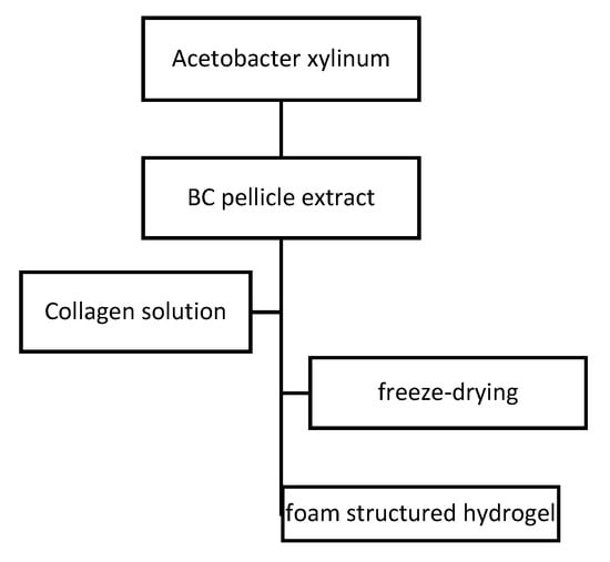 Synthesis route of bacterial cellulose (BC)/collagen hydrogel.