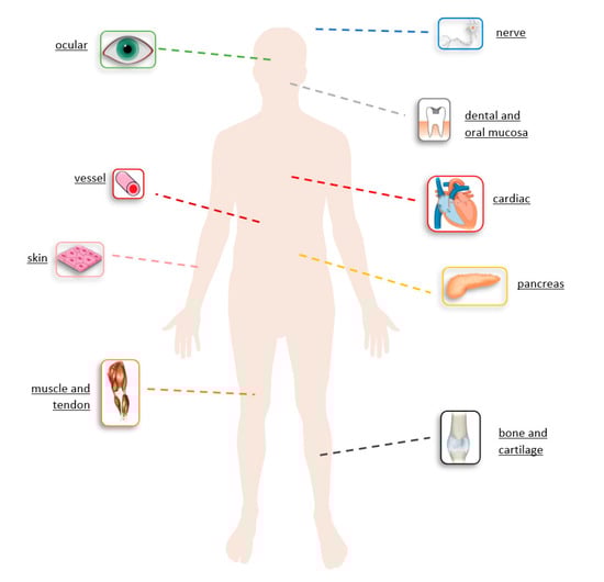 Blended collagen-based hydrogels can be used for cardiovascular diseases, restorative dentistry, neural diseases, bone defects, wound healing, and tendon damages. Mechanical properties of arterial circulation systems are established by collagen. Blended collagen-based biomaterials were similar to natural collagen presenting improved mechanical properties, native strength, low immune response, low calcification properties, with potential for reconstruction of blood vessels (Figure 9).