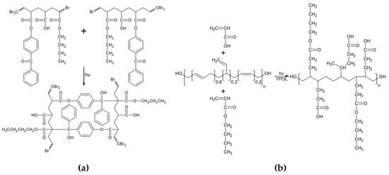 - Andrzejewska, E. Photopolymerization kinetics of multifunctional monomers. Prog. Polym. Sci. 2001, 26, 605–665. [Google Scholar] [CrossRef]
