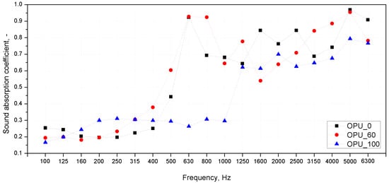 Sound absorption coefficients of OPU PUR foams.