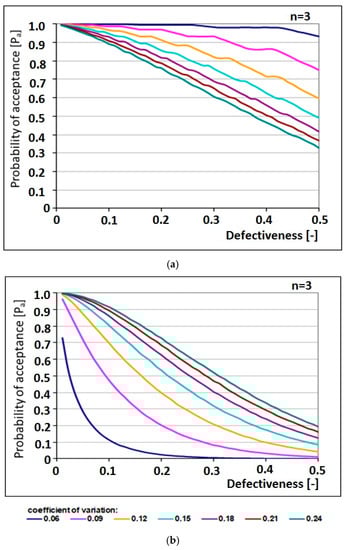 This is confirmed by the results of random simulations and the analysis of conformity criteria for a sample of size n = 3, performed by means of operating characteristic (OC) curves [35]. On the basis of these operations, the following conclusions can be formulated (Figure 1):