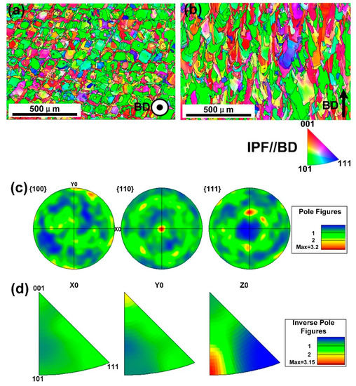 - Yu, H.; Yang, J.; Yin, J.; Wang, Z.; Zeng, X. Comparison on mechanical anisotropies of selective laser melted Ti-6Al-4V alloy and 304 stainless steel. Mater. Sci. Eng. A 2017, 695, 92–100. [Google Scholar] [CrossRef]