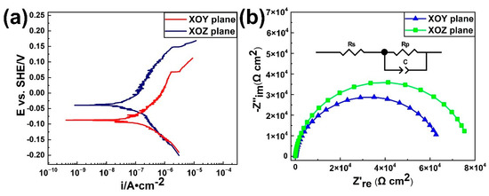 - In the 3.5 wt % NaCl solution, the XOZ plane exhibited higher , and polarization resistance, indicating that the XOZ plane had better corrosion resistance in comparison with the XOY plane. The difference of the corrosion properties between the XOY and XOZ planes were caused by the microstructural features exposed by the tested plane.