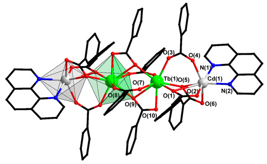 - Shmelev, M.A.; Gogoleva, N.V.; Sidorov, A.A.; Nelyubina, Y.A.; Dolgushin, F.M.; Voronina, Y.K.; Kiskin, M.A.; Aleksandrov, G.G.; Varaksina, E.A.; Taydakov, I.V.; et al. Chemical assembling of heterometallic {Cd–M} (M=Li, Mg, Eu, Tb) molecules with 3,5-Di-tert-butylbenzoate bridges and N-donor ligands. ChemistrySelect 2020, 5, 8475–8482. [Google Scholar] [CrossRef]