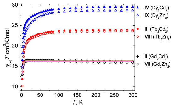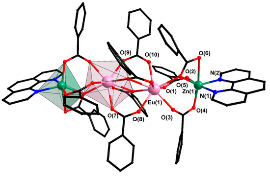 Shmelev, M.A.; Kiskin, M.A.; Voronina, J.K.; Babeshkin, K.A.; Efimov, N.N.; Varaksina, E.A.; Korshunov, V.M.; Taydakov, I.V.; Gogoleva, N.V.; Sidorov, A.A.; et al. Molecular and Polymer Ln2M2 (Ln = Eu, Gd, Tb, Dy; M = Zn, Cd) Complexes with Pentafluorobenzoate Anions: The Role of Temperature and Stacking Effects in the Structure; Magnetic and Luminescent Properties. Materials 2020, 13, 5689. https://doi.org/10.3390/ma13245689