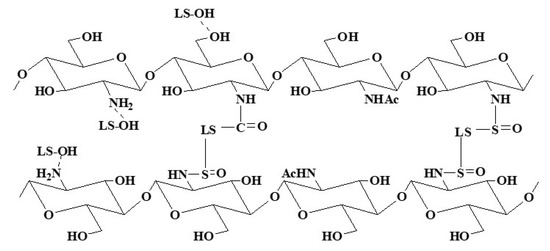 - Pandey, R.P.; Rasool, K.; Rasheed, P.A.; Gomez, T.; Pasha, M.; Mansour, S.A.; Lee, O.-S.; Mahmoud, K.A. One-step synthesis of an antimicrobial framework based on covalently cross-linked chitosan/lignosulfonate (CS@LS) nanospheres. Green Chem. 2020, 22, 678–687. [Google Scholar] [CrossRef]