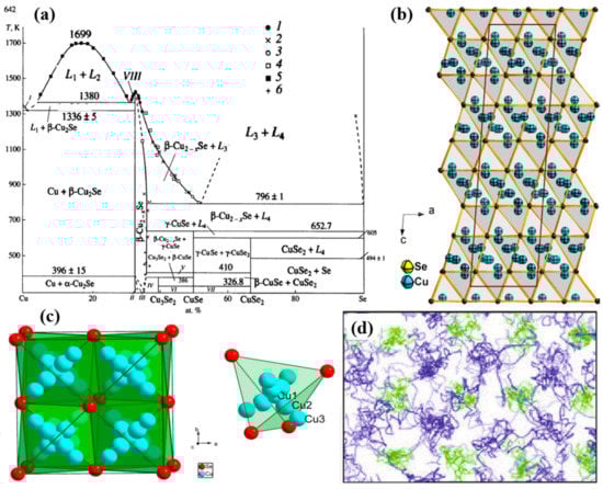 - Zhuo, K.; Wang, J.; Gao, J.; Landman, U.; Chou, M.-Y. Liquidlike Cu atom diffusion in weakly ionic compounds Cu2S and Cu2Se. Phys. Rev. B 2020, 102. [Google Scholar] [CrossRef]