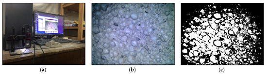 Image processing of porosity, (a) image acquisition, (b) original image of porosity, (c) grayscale porosity.