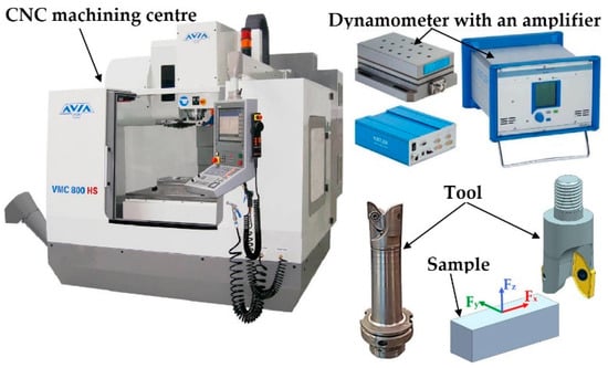 The measuring system used consisted of 9257B piezoelectric dynamometer of Kistler (Winterthur, Switzerland) connected to 5070A charge amplifier. The signal from the amplifier was sent to 5697A DAQ module and it was analysed using the dedicated DynoWare software (2825A, Kistler, Winterthur, Switzerland) []. Figure 2 presents the schematic diagram of the methodology.