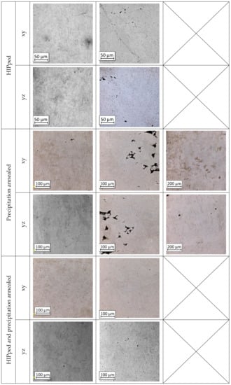 Based on the authors’ own previous research [14,15,34], it was a natural continuation of material analysis connected with the LCF of heat-treated and HIPped parts obtained using the selective laser melting technology (SLM). The main aim of the included research results was to determine the possibility of a void reduction in material volume and describe how it affects LCF properties.