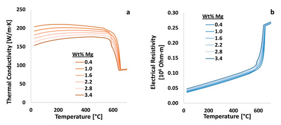 (a) The effect of the magnesium content on the thermal conductivity of Al 6061. (b) The effect of the magnesium content on the electrical resistivity of Al 6061.
