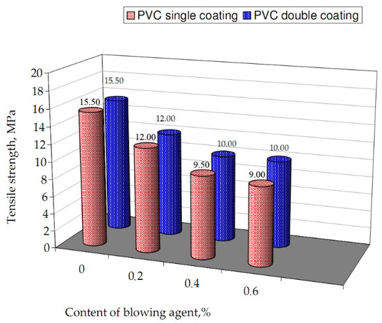 Those mechanical properties of PVC materials, including their mechanical impact strength, depend on the cellular structure of the material and pore orientation. It was found that the characteristics of the poring agent distribution affect the properties of the coating materials studied. The agent added to 0.4–0.6% contributes to a significant decline in the mechanical properties of the examined materials based on PVC.