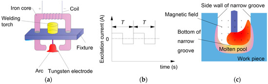 - Sun, Q.; Wang, J.; Cai, C.; Li, Q.; Feng, J. Optimization of magnetic arc oscillation system by using double magnetic pole to TIG narrow gap welding. Int. J. Adv. Manuf. Technol. 2016, 86, 761–767. [Google Scholar] [CrossRef]