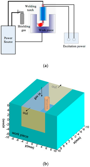 - Liu, Z.; Li, Y.; Sun, Y. Simulation and analysis of heat transfer and fluid flow characteristics of arc plasma in longitudinal magnetic field-tungsten inert gas hybrid welding. Int. J. Adv. Manuf. Technol. 2018, 98, 2015–2030. [Google Scholar] [CrossRef]