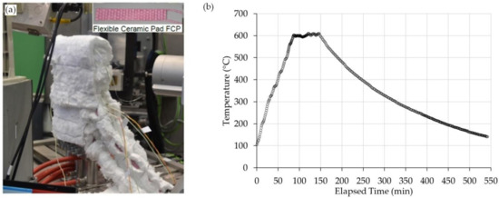 (a) Experimental set-up for Post-Weld Heat Treatment (PWHT), and (b) time-temperature graph during the PWHT cycle.