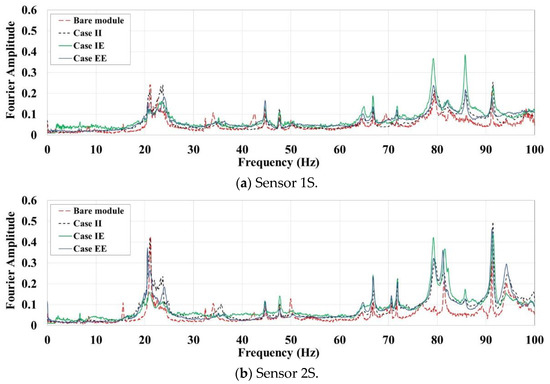 Averaged FFT plots for the S-oriented sensors. (a) Sensor 1S; (b) Sensor 2S.