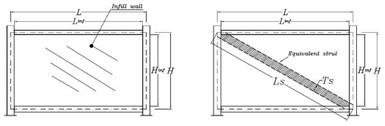 - Mbewe, P.B.K.; Van Zijl, G.P.A.G. Characterization of Equivalent Struts for Macromodeling of Infilled Masonry RC Frames Subjected to Lateral Load. J. Struct. Eng. 2019, 145, 04019035. [Google Scholar] [CrossRef]