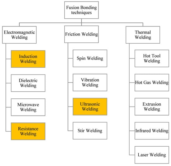 Fusion bonding techniques categorized by the technology used to generate heat. The main fusion bonding techniques are highlighted in yellow.