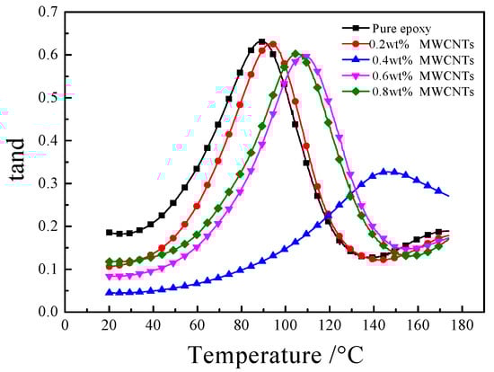 tanδ–T curves of epoxy nanocomposites with the content of various PABA-modified MWCNTs.