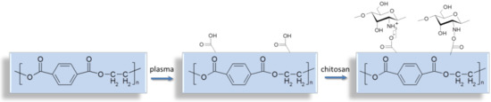 Chitosan was dissolved in 1% CH3COOH over 2 h to achieve 1 wt% concentration. Then, PET films immediately after plasma treatment were immersed into the chitosan solutions for 2 h at 37 °C. Afterwards, they were carefully washed with distilled water and dried in a dust-free chamber at RT.