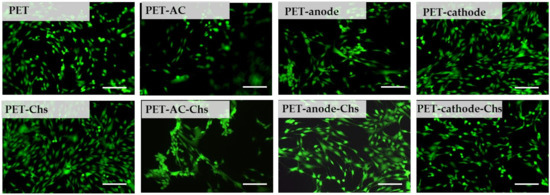 Thus, plasma treatment allows us to regulate the PET film’s surface chemical structure, morphology and properties as a function of discharge type, as well as to activate it for chitosan immobilization. Although plasma treatment could affect surface properties, low cell adhesion on PET substrates was observed in the long run.