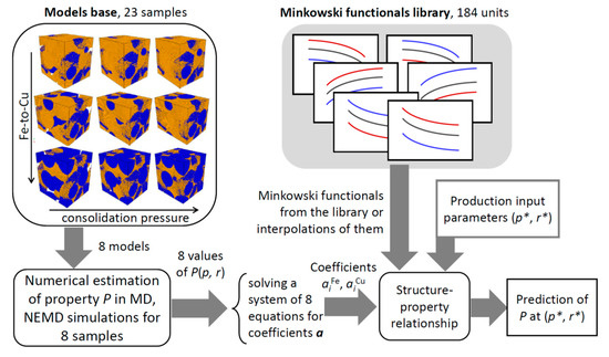 The estimated Minkowski functionals form a complete basis for formalizing the structure– properties relationship of bimetallic Fe–Cu material using Hadwiger’s theorem (see Section 3.4).