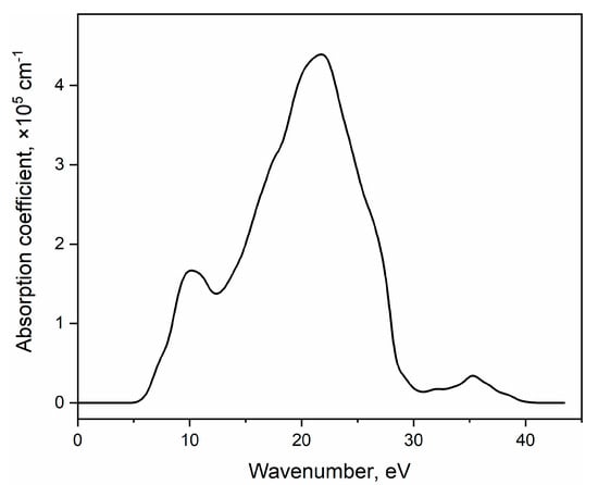 The absorption coefficient calculated by LDA using a scissor operator (the difference between the theoretical and experimental [52] band gap values) equal to 0.539 eV is plotted in Figure 5. From the partial density of states analysis (Figure 4 and Figure S1), it follows that the first peak the spectrum is associated with electronic transitions mainly from the 2p orbitals of the O atom to the 4d orbitals of Y atoms.