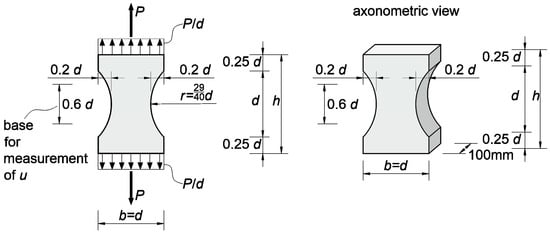 Shape of concrete specimens for the tension tests (based on Reference []).